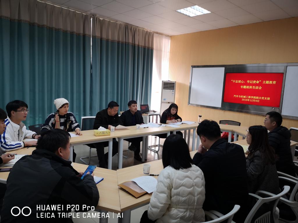 根据上级党委的安排,12月9日上午,院办党支部在工1-B414召开“不忘初心、牢记使命”专题组织生活会,会议由支部书记陈燕主持,学院党委书记邱国良、院长杜荣华全程出席会议并作指导。会议围绕主题教育总要求,进行自我检视和对照剖析,深入开展批评和自我批评。