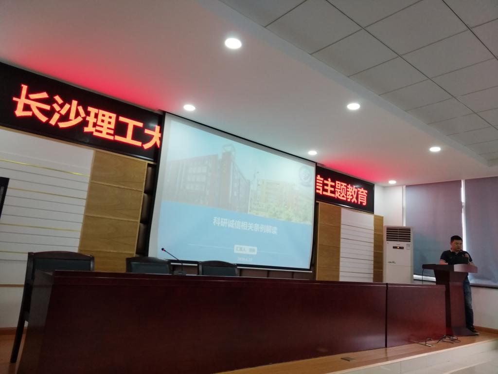主管科研工作的副院长胡林向广大师生解读国家、学校相关科研诚信条例,并从微信打招呼、抄袭他人成果、花钱雇“抢手”、剽窃、伪造信息等四个方面的典型案例入手,剖析学术不端行为,强调科研诚信的重要性,并就如何遏制学术不端行为提出四点要求,加深了大家对科研诚信问题的认识。