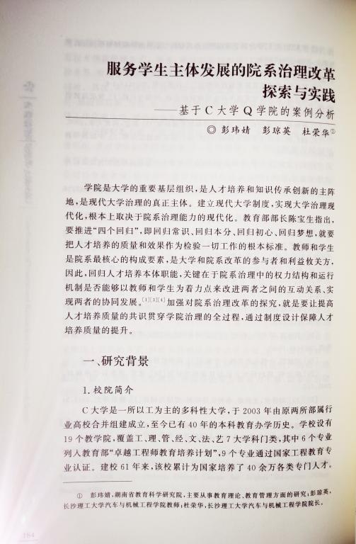 《服务学生主体发展的院系治理改革探索与实践——基于C大学Q学院的案例分析》