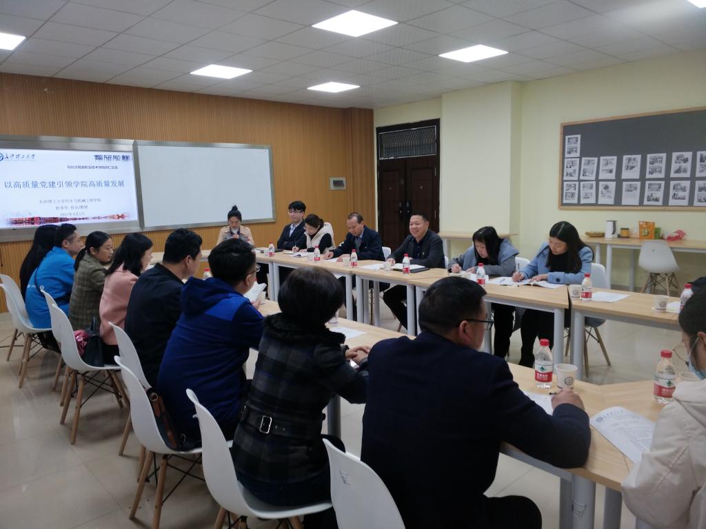 4月2日下午,长沙民政学院医黄岩松学院一行来汽机学院调研党建工作。院长杜荣华,副书记刘亚辉,党务办公室主任兼专职组织员陈燕,学生党总支副书记王丽丽,教师、辅导员代表参加了会议,会议由院长杜荣华主持。