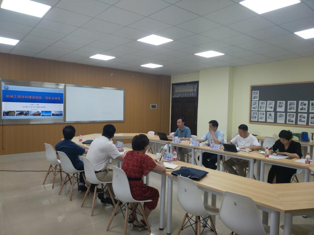 施一满对学科建设与发展规划处处长王宏一行的到来表示欢迎。毛聪作《机械工程学科建设现状、目标及举措》专题工作汇报。报告从学院学科建设的现状及问题、“十四五”建设重点任务与举措两个方面进行阐述;杜荣华就学院学科建设未来的重点工作及学科建设发展方向做补充说明;施一满分析了学院实际困难,希望得到学校支持与帮助。会上,与会人员就学科建设相关工作及问题进行研究与探讨。