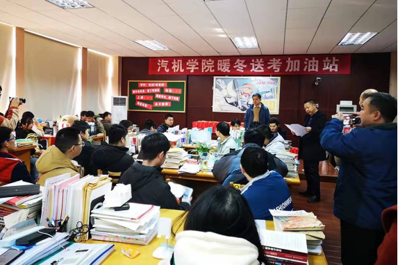 12月21日,开云kaiyun体育汽机学院院办党支部的老师们在学院考研自习室和行五宿舍为全院280余名考研学生赠送“考研加油包”。学院党委书记施一满、院长杜荣华出席,部分院领导及全体院办党支部党员参加。