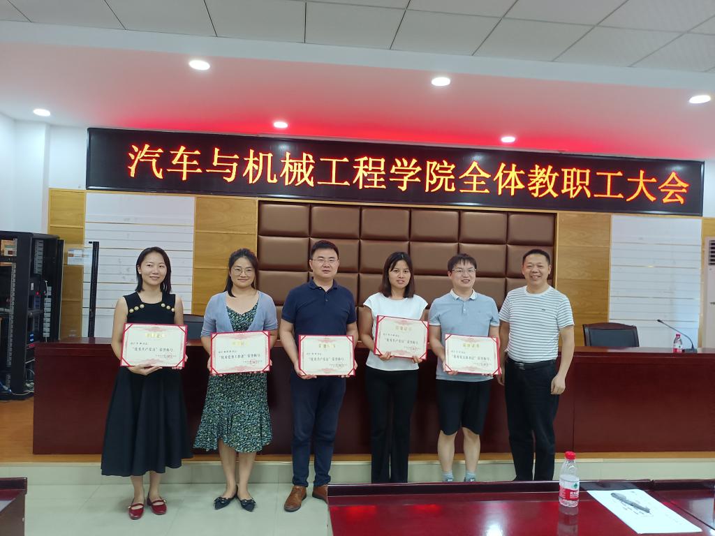 首先,由各系(室、中心)主任就本系(室、中心)2022年上半年目标任务完成情况进行汇报,对所存在的问题作了说明,并提出后一段工作打算;杜荣华院长着重介绍了本学期的重点工作任务(国家教学奖、课程思政示范课程申报、专业认证工作、学科建设、博士点申报、人才引进等),并指明当前学院所面临的形势和今后发展方向;副书记唐宏宾就学生考研、就业、企业开放日、招生、校友工作了通报和布置;会上,学院领导为荣获校级“七一”表彰的集体和个人颁发了奖牌和证书,并合影留念。