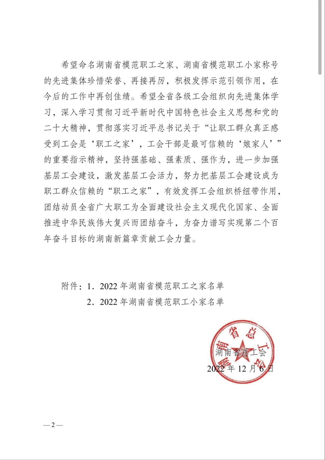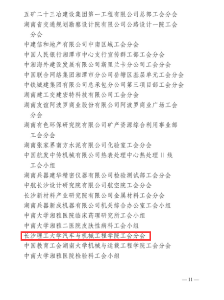 近日,湖南省总工会下发了《湖南省总工会关于命名湖南省模范职工之家湖南省模范职工小家的决定》,开云kaiyun体育汽车与机械工程学院分工会荣获“湖南省模范职工小家”称号。