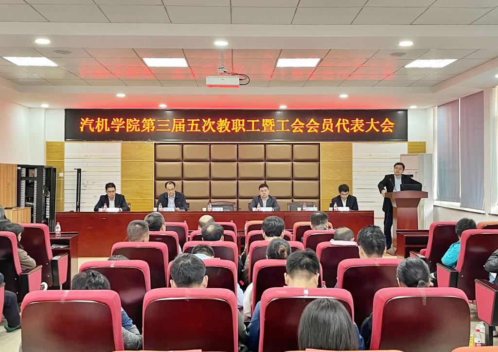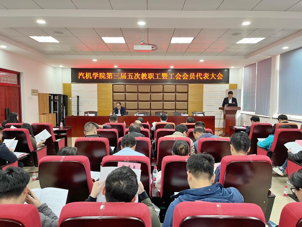 2023年3月7日13时,汽车与机械工程学院三届五次教职工暨工会会员代表大会在工一B417召开,学院教职工代表参加了会议,图书馆馆长杜荣华、科学研究部副部长胡宏伟作为大会特邀嘉宾参会。会议由学院党委副书记唐宏宾主持。