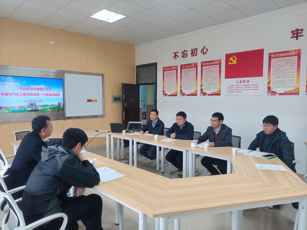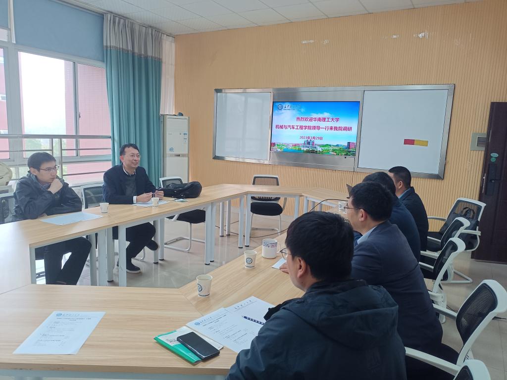 3月29日下午,华南理工大学机械与汽车工程学院领导一行3人来我院开展交流调研。会议在工一B411会议室举行,副院长(主持工作)胡林、副院长何志勇、汽车工程系相关老师参加了调研会议,会议由胡林主持。