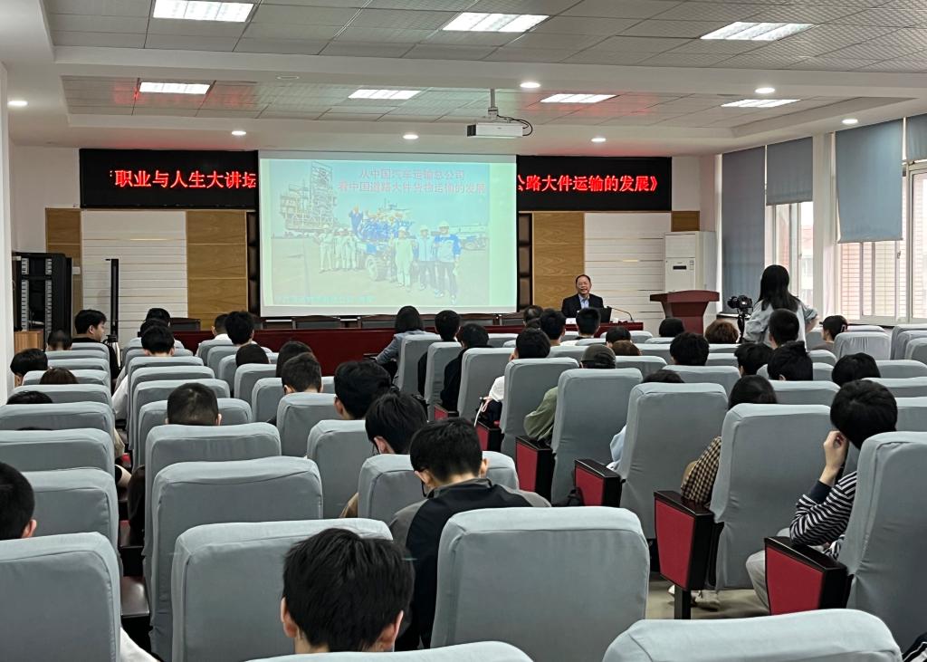 4月26日,中远海运工程物流有限公司技术总监、高级工程师,开云官网汽车运用工程专业84届校友劳军先生应邀学校“职业与人生大讲坛”,为师生作了《从中国汽车运输总公司看中国公路大件运输的发展》的专题报告。校友中心唐青主任、汽机学院党委书记孔伟红、副书记周小杰、副院长唐宏宾、党委委员伍文广等领导以及100余名汽机、交通学院学生参加了此次讲座。