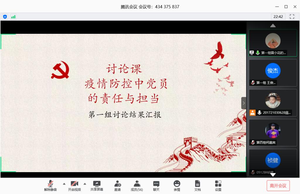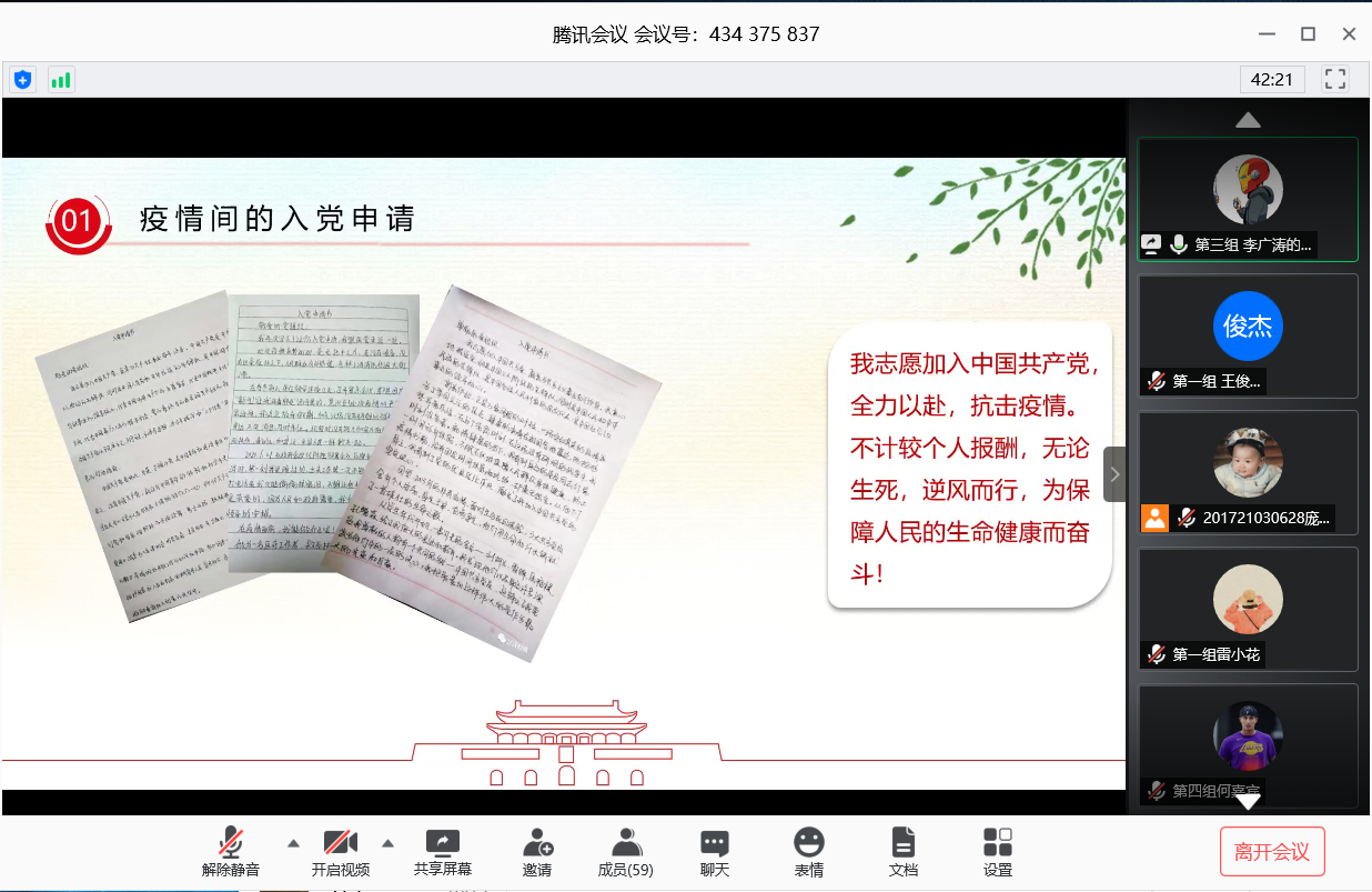 2020年5月19日晚7点,汽车与机械工程学院分党校组织第11期党员发展对象开展“疫情防控中党员的责任与担当”主题讨论课,本期56名发展对象全部参加。