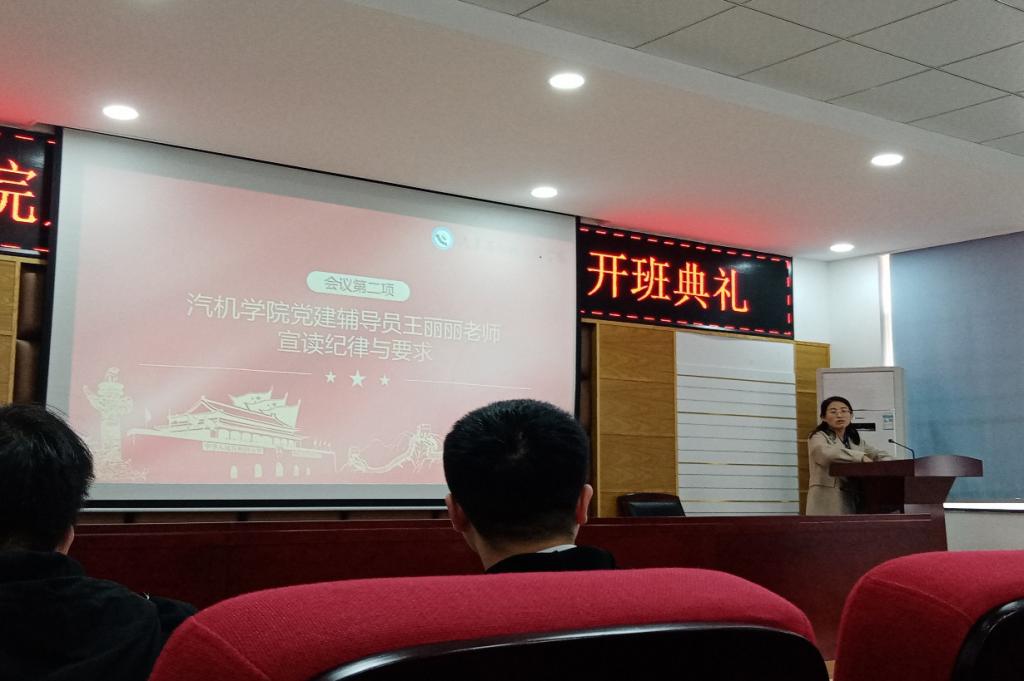 2020年11月3日中午,汽车与机械工程学院第22期预备党员和第12期发展对象培训班开班仪式在工一B417举行。院党建辅导员王丽丽、51名预备党员和50名发展对象参会。仪式由党员邓蕾主持。
