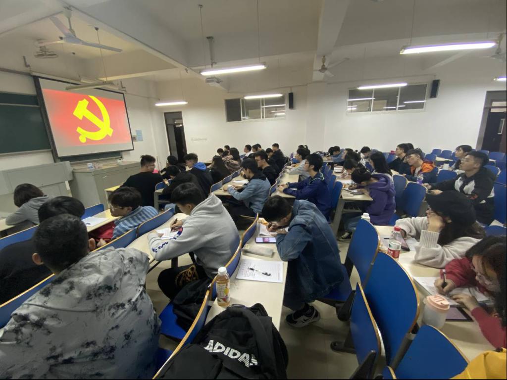 2020年11月3日晚1830,汽车与机械工程学院分党校组织第22期预备党员在工一B205集中开展党章理论学习。第22期预备党员按时参加。