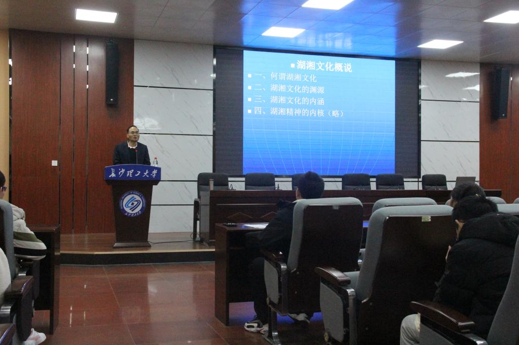 2020年11月26日,在开云kaiyun体育四教报告厅,长理匠心学堂通识讲坛邀请到长理中文系颜建华教授为同学们做主题为“湖湘文化概说”的讲座。