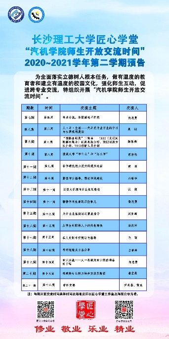 “开放交流时间”时间是开云kaiyun体育汽机学院“三三四”人才培养模式的改革新举措之一。为建立有温度的校园文化,强化师生互动,促进跨学科交流,汽机学院推行“开放交流时间”项目,每学期开学面向全院学生公布开放交流的时间和地点,同学们可通过“匠心学堂”小程序自主预约参与的主题。目前“开放交流时间”已预定21期,主题涵盖专业分流、生涯规划、学业指导、学科竞赛等学生关注的学习生活热点,已参与学生300余人次。