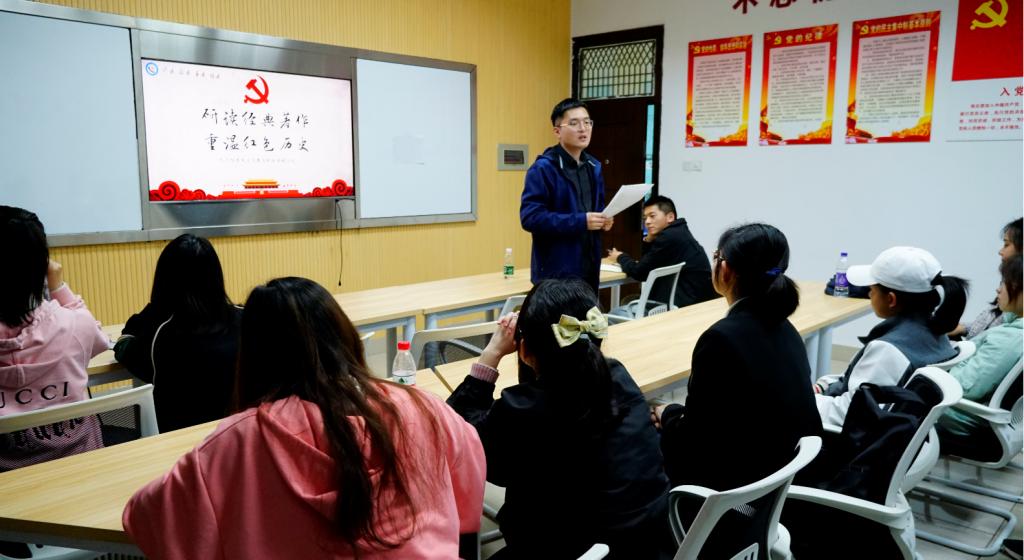 2021年4月25日19:00汽车与机械工程学院“研读经典著作,重温红色历史”学习活动在云塘校区工科一楼B414顺利举行,李特超老师出席了本次活动。