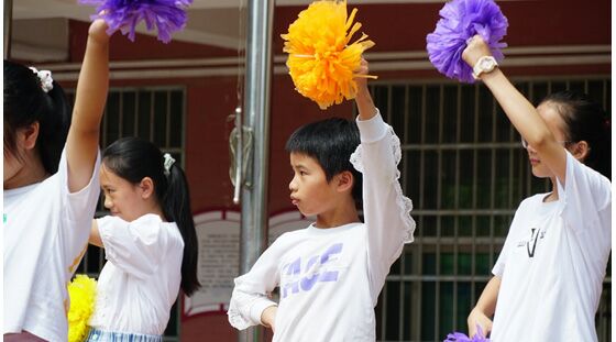 首先,主持人支教队员孙心怡同学发表了自己对运动会的期望,宣布运动会正式开始。随后,支教队伍中的体育委员杨柱同学与同学们讲解了一些运动中需要注意的事项。紧接着就是大班女生们的啦啦操舞蹈《向快乐出发》节目的表演。瞬间把现场气氛提了起来。