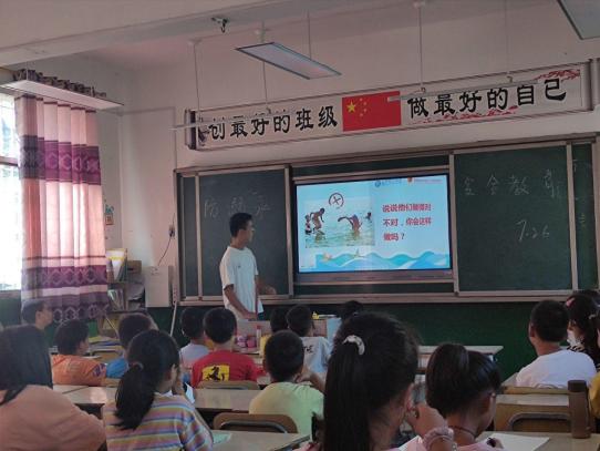 孩子们的学习生活早已踏上正轨,教室里朗朗的读书声,操场上飞驰的身影,这正是志愿者们努力的成果。下午小班的手工课,刘科老师教小朋友们折爱心,每位小朋友都跟随着老师的步伐,一步一步折出了精美的爱心手工作品。有一位叫刘懿曦的小朋友,在之前与她的聊天中,我们得知她的母亲在她小的时候离开了她,她在本次手工课上折了两个精美的爱心,一个大爱心,一个小爱心,她把小爱心装进大爱心里,对老师说:“这个小爱心是我,大爱心是妈妈”。志愿者们听后也觉得心头一酸——母爱是永恒的话题。在今天的河南洪灾主题班会上,志愿者们给学生展示的视频中也屡屡出现妻离子散的场景,孩子们十分触动,原本嘈杂的教室也渐渐安静下来。