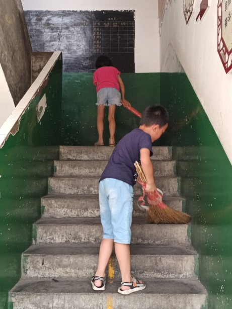 早上第二节课,刘科老师的手工课上,孩子们眼睛里有了光亮,因为这节课学的是折千纸鹤,他们都想亲手折一只千纸鹤送给爸爸妈妈,童真的脸上洋溢起了幸福的微笑。日禺时分,文红老师在带着孩子们一边唱歌一边跟着节奏做手势,孩子们的热情正如室外的骄阳,尽管他们的动作憨态可掬,但那认真的神情却打动了所有的志愿者,这就是我们来到这里最想看到的东西。放学后,在各班班主任的安排下,同学们开始打扫卫生,在大家的协同合作下,卫生进行的井井有条,没有孩子抱怨,大家都很自觉地做好自己的工作,孩子们的良好习惯要从小培养,一屋不扫,何以扫天下?