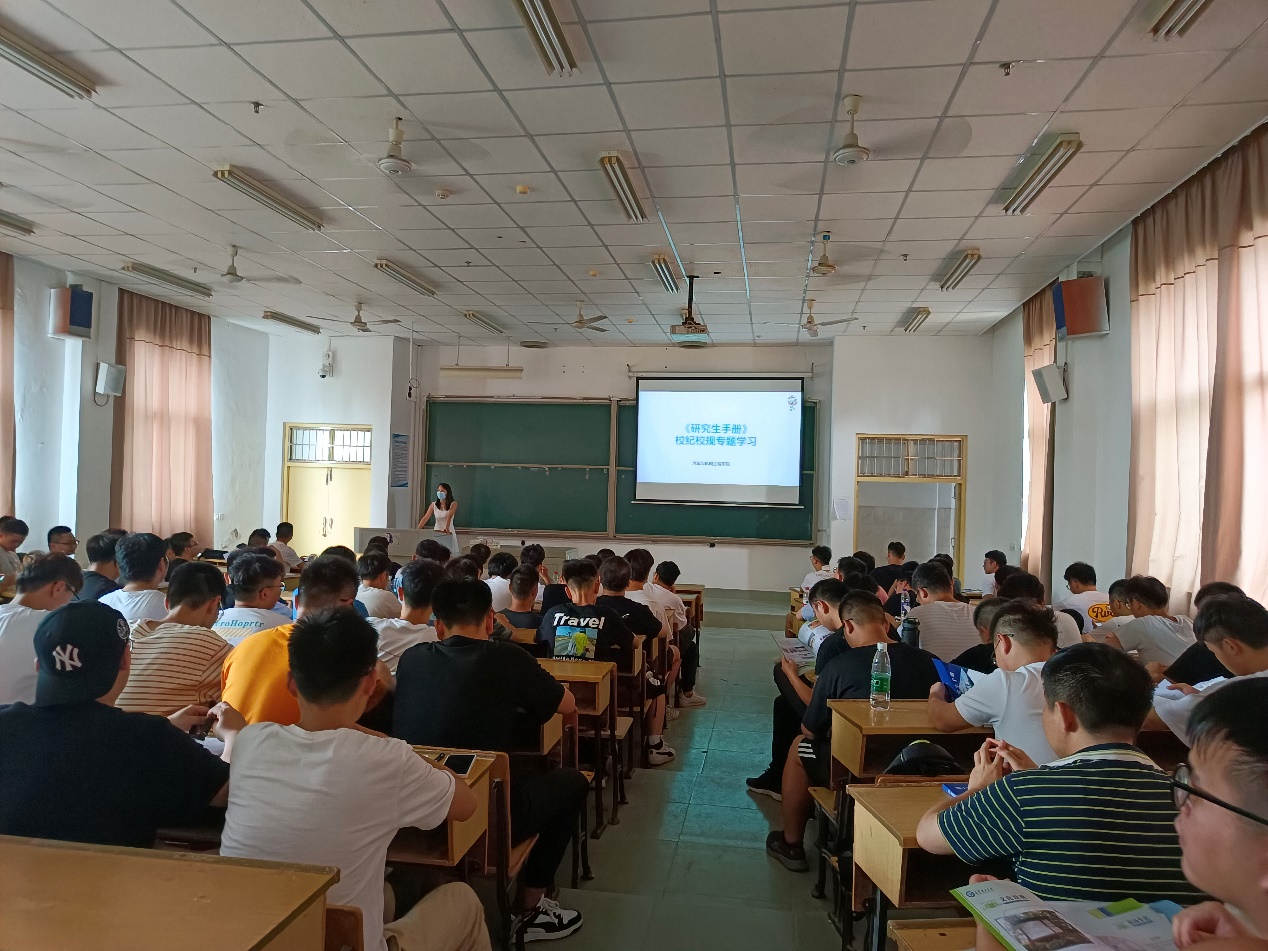 为了使新生更快融入研究生生活,9月7日下午,汽机学院在金盆岭校区1教A401针对2021级研究生开展了《研究生手册》专题学习、安全教育专题学习、文明礼仪专题学习和全国研究生教育会议精神学习讨论,学院全体2021级研究生参与本次专题学习。