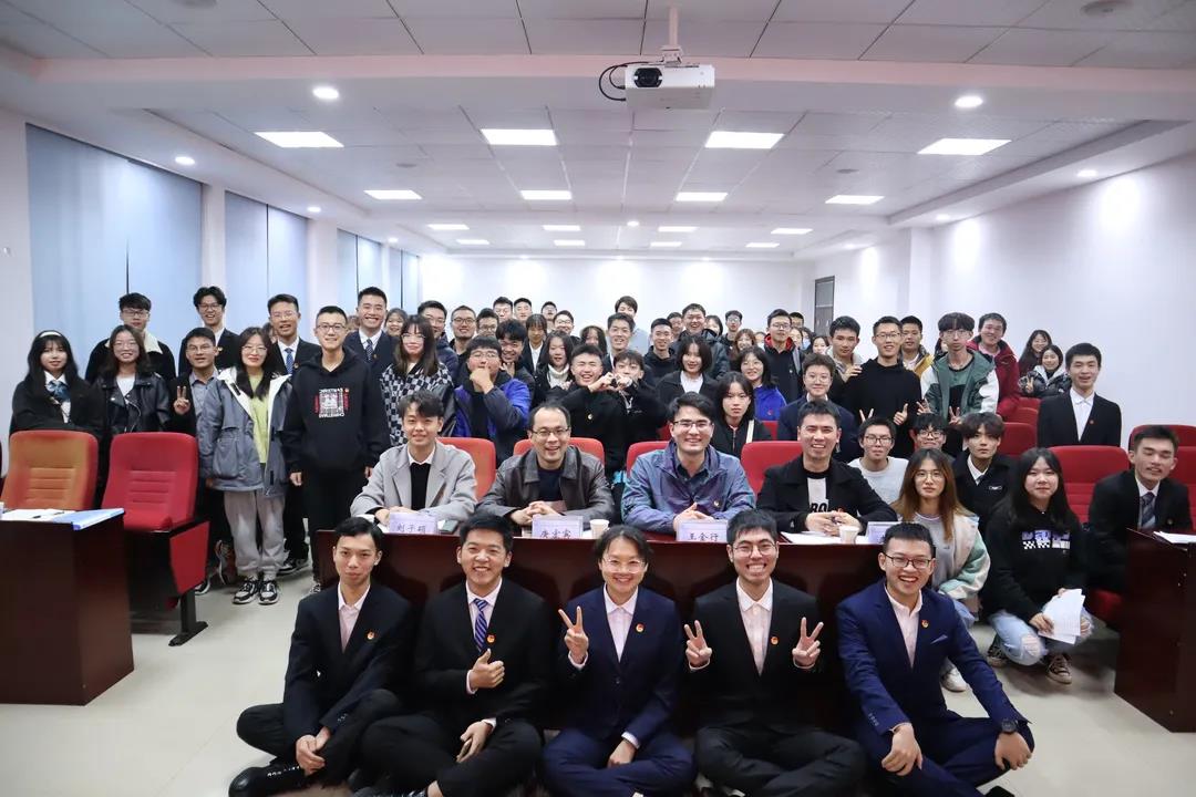之后,团委学生会各个部门代表依次上台,结合PPT总结这一年来部门取得的各项成就和遇到的问题,也分享了从活动中获得的经验,并对下一年的工作安排进行了简要介绍。接下来,团委学生会主席团成员发言,主席团成员刘烁对团委学生会近期的思想工作、学生工作做出总结,并对未来提出期望,总结经验、鉴往知来。然后,主席团成员曾令泷指出本次例会存在的一些问题,比如PPT的格式、代表汇报时的仪容、汇报内容主题不突出等,并对这些问题提出了改进的建议。他希望各部门在接下来的工作中,及时进行工作总结,避免下次出现相同的问题。最后是主席团成员林凌峰发言,不忘初心,砥砺前行,他希望各部门及各学院组织能把握方向,把握路径;打造品牌,加大宣传;健全制度,规范工作。会议最后一项,学院领导、老师进行工作指导。刘子硕老师提出了现在机遇与挑战并存,我们要把握机遇,直面挑战。并鼓励我们发扬校训、院训。王金行老师对团委学生会近期工作提出肯定,并对未来提出四点期望:要明确身份,提高归属感;不断提高综合素质、组织协调能力;学会发现并解决问题;总结经验并创新。然后,李凯辉老师分享三个关键词,分别是:担当、传承、创新。李凯辉老师对每个词语的分享都与团委学生会的工作相结合,让大家更加明白每个词语对团委学生会的意义。最后,唐宏宾老师为团委学生会提出建议,以致于能更好地服务学生,也为学院所属球队做出指导,并提出大家要有担当意识,提高积极性,加强各部门间的协同联系。会议最后,全体成员合影留念。到此,本次例会圆满结束。