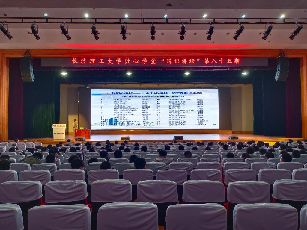 2022年3月8日下午2:30,在金盆岭校区五教大礼堂,长理匠心学堂通识讲坛邀请到中南大学机电工程学院胡军科教授为同学们做主题为“科学思想,人文情怀”的讲座。讲座由汽机学院党委副书记唐宏宾老师主持。