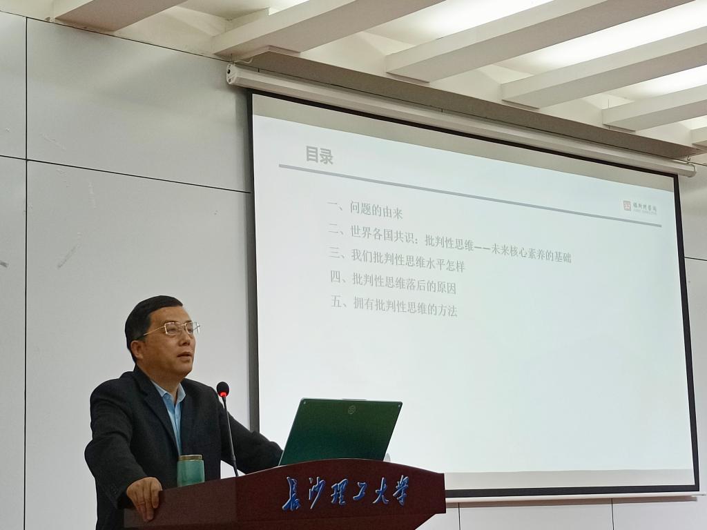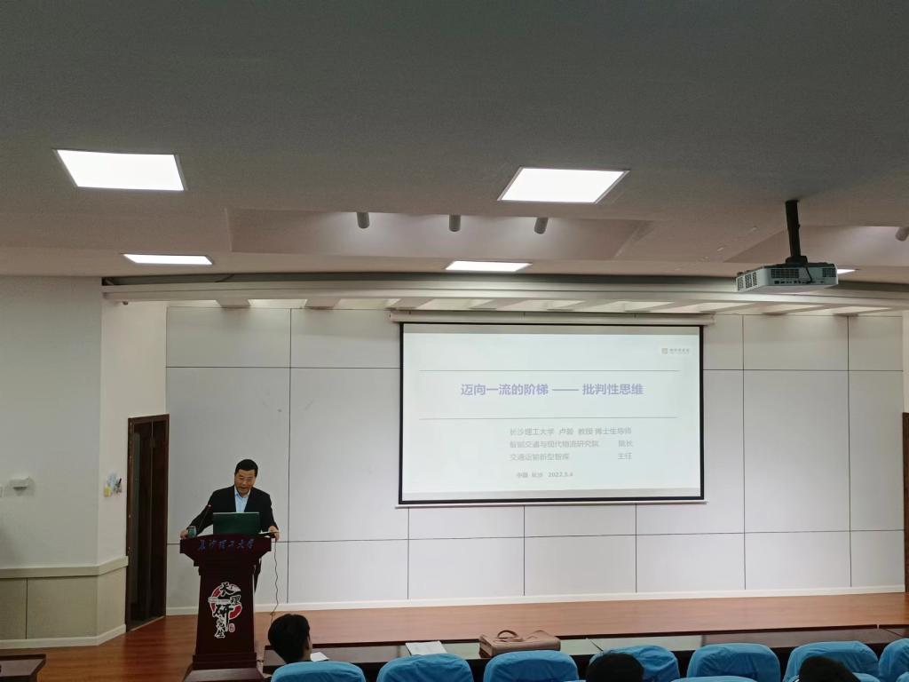 5月12日晚19:00,交通运输工程学院卢毅教授受邀参加长理匠心学堂通识讲坛,于金盆岭校区12教200教室为同学们主讲“迈向一流的阶梯——批判性思维”专题讲座。该讲座旨在引导开云官网大学生有意识主动学习,培养自己的批判性思维,找到原因,缩小开云官网大学生与国内一流大学大学生能力之间的差距。院长杜荣华出席了此次讲座,讲座由辅导员刘子硕主持。