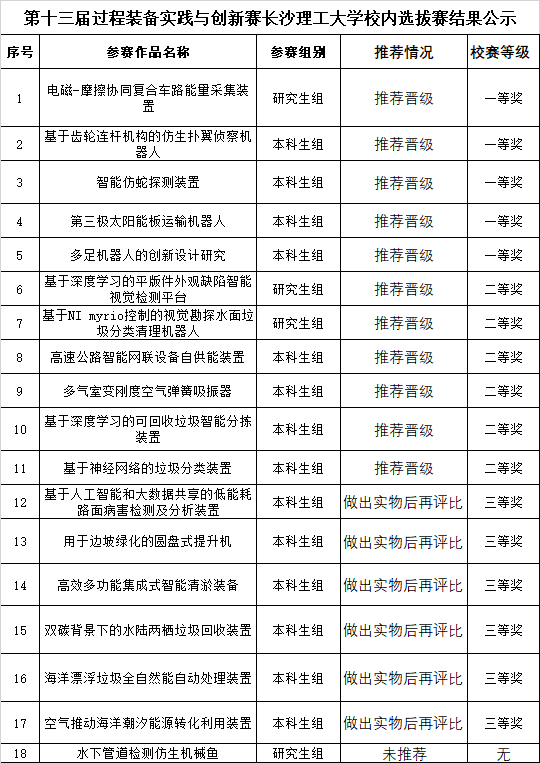 第十三届过程装备实践与创新赛开云kaiyun体育校内选拔赛结果公示如下: