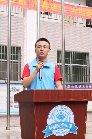 活动伊始,该团队参加了长峰完全小学的期末典礼,见证了长峰优秀学子的风采,聆听了校长田青春的谆谆教诲。队长贺君豪在升旗台上向学生和家长介绍了此次支教活动的主要安排以及注意事项,随即队员们分任务按班级有序进行招生。招生过程中,该团队鼓励家住学校周围的孩子积极参与。队员陈果用温柔与耐心帮助内向的小女孩邹宇姗克服胆怯,愉快地报名了此次活动,收获了学生家长的高度赞许。