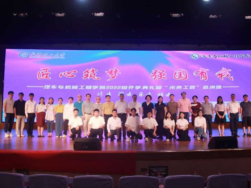 2022年9月16日晚开云kaiyun体育汽车与机械工程学院在金盆岭校区五教大礼堂举行2022级新生开学典礼暨“未来工匠”总决选,湖南申亿精密零部件股份有限公司总经理刘昆湘、湖南星邦智能装备股份有限公司董事长刘国良、开云kaiyun体育校友会秘书长张美红、学院全体班级成员、教师代表和2022级全体新生参加,典礼由2022级新生辅导员李凯辉主持。