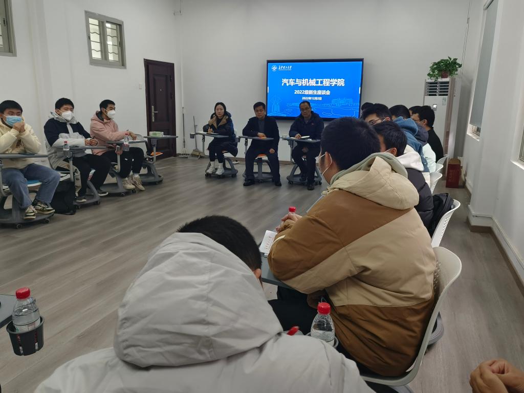 为了深入了解22级新生近期的思想状况和学习生活情况,及时解决同学们目前所面临的各方面问题,汽机学院于12月2日下午16:00在金盆岭校区办公大楼101活动室组织召开了2022年度第五次“院领导面对面”交流活动。来自学院2022级的16位学生代表参加了此次座谈。学院党委书记施一满,学院党委副书记唐宏宾,22级辅导员宋新、李凯辉到会认真听取意见,会议由22级辅导员老师李凯辉主持。