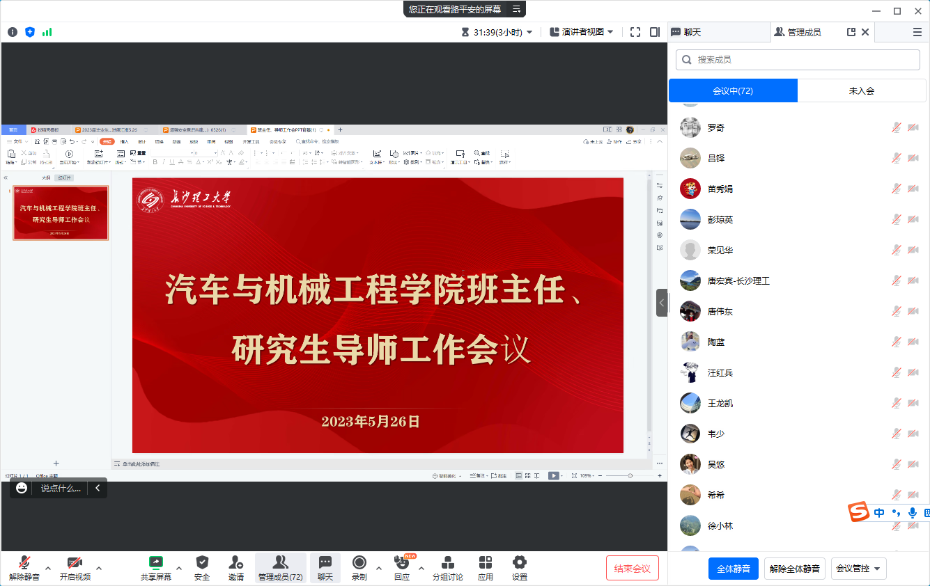 为进一步加强学校安全教育工作,筑牢校园安全屏障,推进高质量平安校园建设。5月26日晚20点,学院于线上召开班主任、研究生导师工作会议。学院党委书记施一满、副院长(主持工作)胡林、党委副书记唐宏宾、全体班主任、全体研究生导师、全体辅导员参与本次会议。