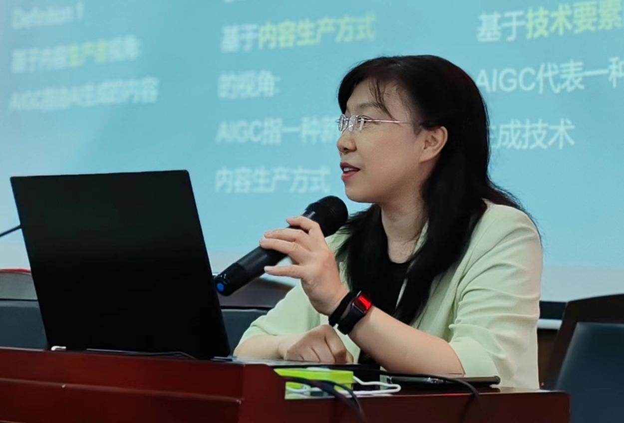 文献数据库、学术搜索引擎以及研究生文献检索技能是研究生科研工作不可或缺的重要组成部分,研究生应该熟练掌握相关数据库和搜索引擎的使用技巧。讲座中,副研究馆员张雪梅以丰富的实践经验向同学们展示了如何有效地利用工具辅助科研,教会学生如何灵活应用各种检索策略来快速准确的获取所需文献。她首先介绍了什么是生成式人工智能——AIGC,再结合大量的应用案例来体现它作为一种信息资源的特征以及它与传统信息资源的联系与区别。她表示,AIGC不仅可以为学生制定个性化学习方案,还可以随时随地为学生提供支持,帮助学生进行独立和在线学习。尽管如此,AIGC对教学也有消极的影响,同时也面临着信息质量与准确性的挑战。最后,张雪梅倡导作为研究生不仅应该积极拥抱AIGC时代的变革,推动学术届的发展和进步,更要遵守科研诚信以及学术规范。