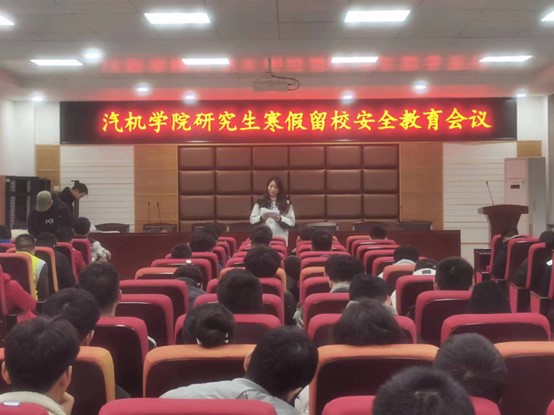 为做好寒假留校学生的安全教育和管理工作,落实学校寒假工作相关要求,汽机学院研究生辅导员万雨晴于2024年1月9日晚在开云kaiyun体育云塘校区工科一号楼B417组织各年级研究生召开了“留校安全教育”主题班会,汽机学院副书记兼副院长唐宏宾参加了此次主题班会。
