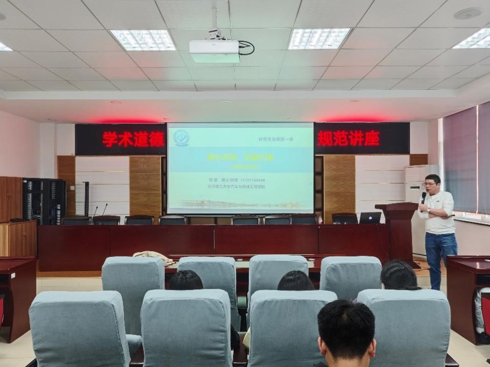 为进一步加强学术规范和学术道德宣传教育工作,加强研究生学风建设,积极弘扬求真务实、诚信严谨的学术风气,汽车与机械工程学院于2024年10月8日下午三点半在工科一号楼B417举行“科学道德与学术规范”专题讲座。讲座由刘鑫教授主讲。