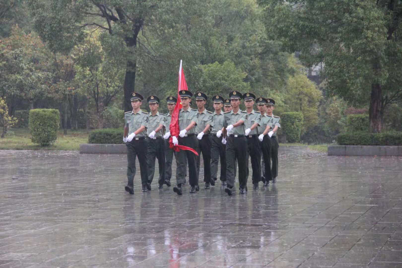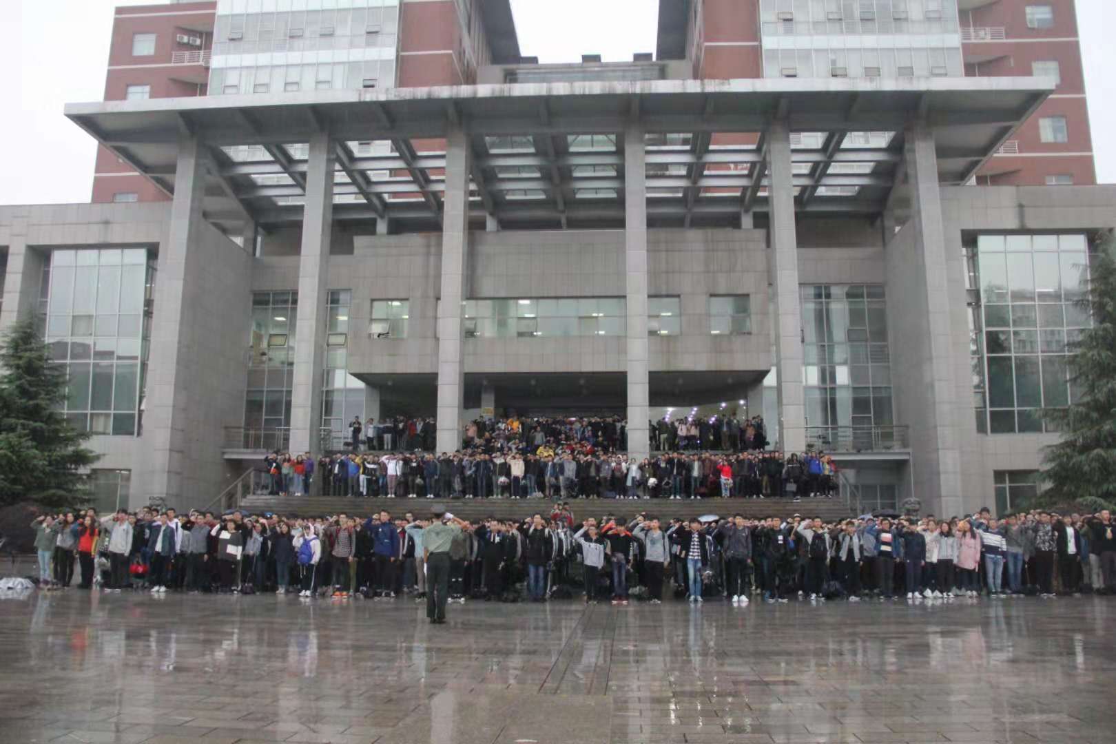 升旗仪式在大雨中圆满落幕,本次仪式的参与人数达1300余人,同学们都很积极,不打伞,不戴帽,只为眼里心里的那抹红色、那面风里雨里朝阳里都执拗飘扬的旗帜。