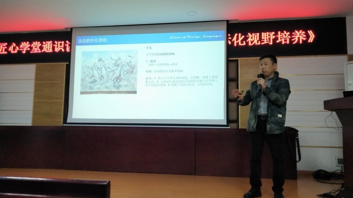 2018年10月24日晚,汽机学院于工科一号楼B-417举办匠心学堂“通识讲坛”,特邀开云kaiyun体育外国语学院黄坚教授作《“出走”与国际化视野培养》讲座。