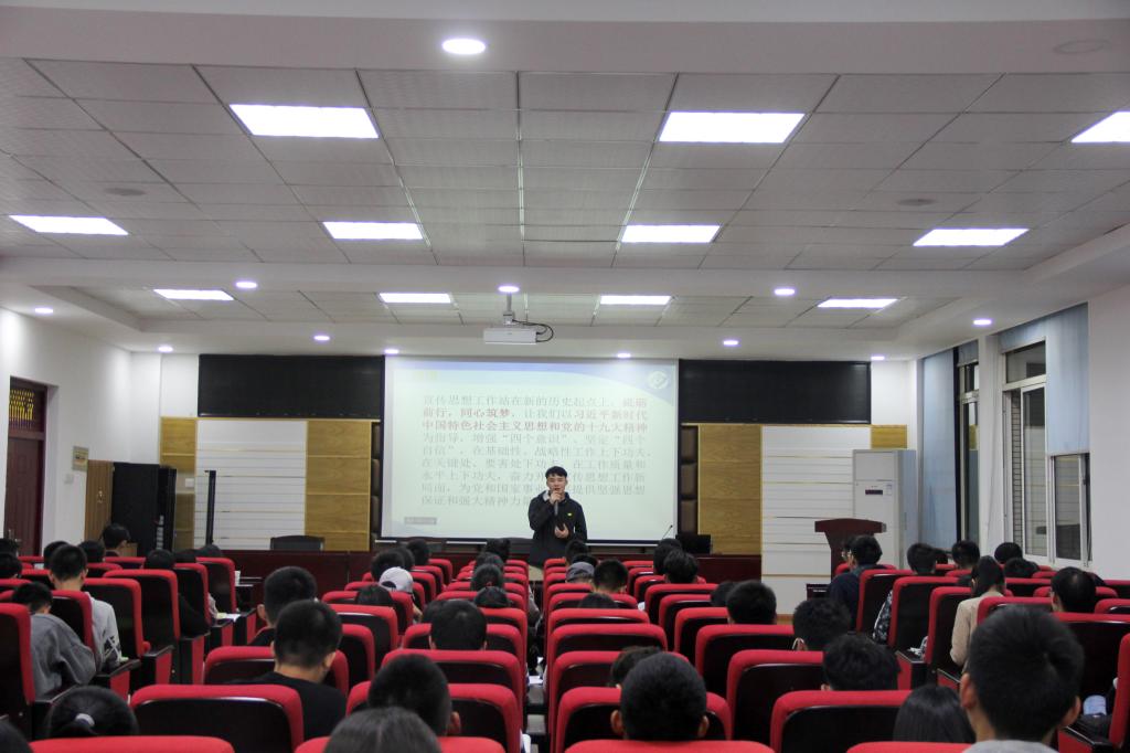2018年11月1日晚,我院青年马克思主义者培训班第一次理论课程于云塘校区工科一号楼B417开展,开云官网党委宣传部杨力铮老师作主题为“坚守舆论阵地,做好新闻宣传"的课程培训。我院第八期青马班100余名成员参加了本次课程。