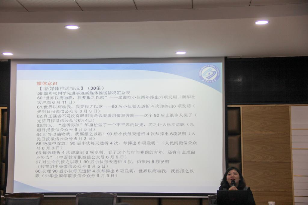 课程开始,杨老师以汽机学院的“匠心”精神为依据向大家提出了“以一颗匠心打造新闻作品”的要求。接着,杨老师通过宣传意识、策划意识和媒体意识三方面对“意识“进行了详细的讲解;以校园网和新闻网对“阵地(平台)进行分析,并向青马班同学讲述了微信与微博的不同特点和影响力。杨老师强调新闻的真实性、新鲜性、广泛性和时效性,并就时效性着重进行了说明,指出了新闻的几大注意事项,如标题、主体、照片等。最后,杨老师从定位、目标人群、关注度及关注人的需求四个方面对微信公众号的运行做了讲解。