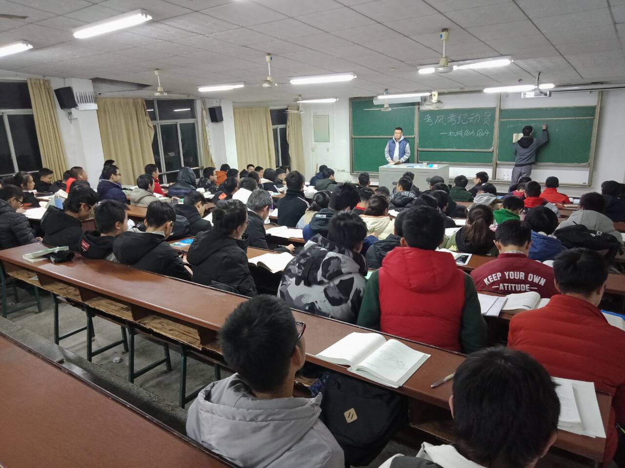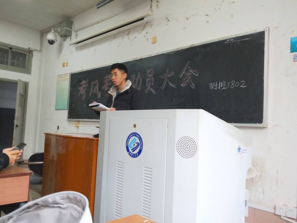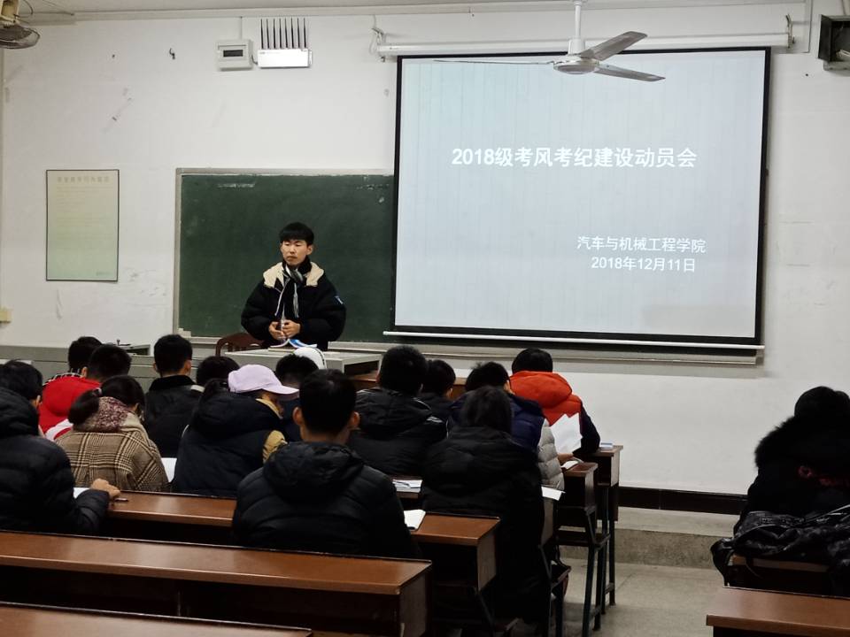 2018年12月12日,汽机学院2018级辅导员老师路平安组织各班班长在金盆岭12教310召开新生考风考纪建设动员会。