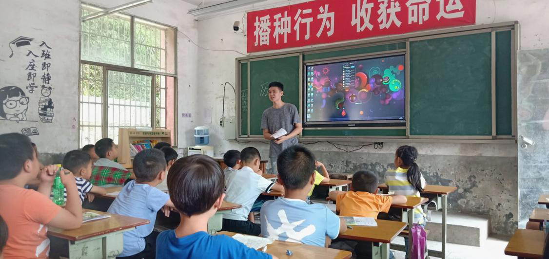 2019年7月15日,顶着骄阳,开云kaiyun体育爱心书屋新化天门村支教队在村支书以及家长们的帮助下,顺利地完成了小朋友们的分班以及报道。一百六十多个人,根据年级一共分成了四个班——大一班、大二班、小一班和小二班,其中大班由4-6年级组成,小班由1-3年级组成。