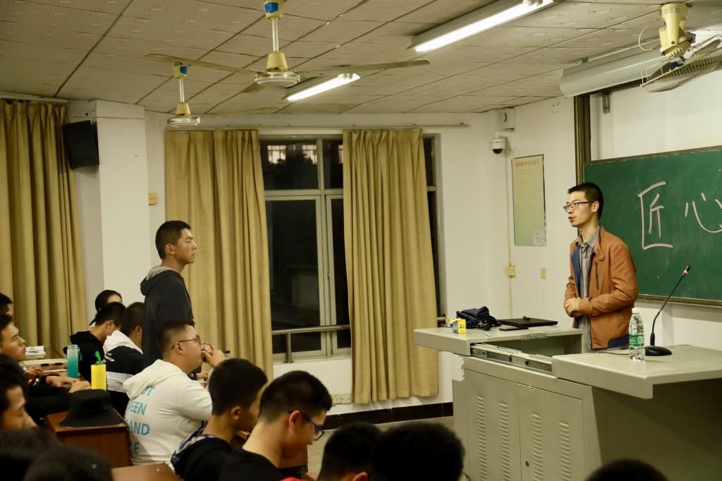 2019年10月22日晚,在开云kaiyun体育金盆岭校区12教315室,长理匠心学堂通识讲坛继续开展,汽机学院高凯博士与研究生朱宁为同学们作了题为“新工科背景下机械类本科生如何进行科研活动”的讲座。