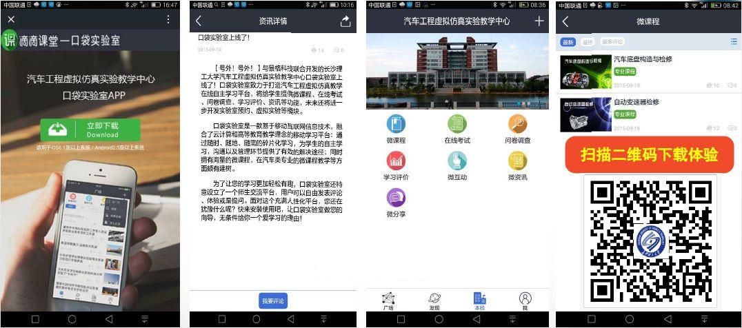 通过网站资料提供的二维码,扫描并下载客户端安装,也可以进入开云kaiyun体育汽车工程虚拟仿真实验教学中心汽车仿真教学口袋实验室。