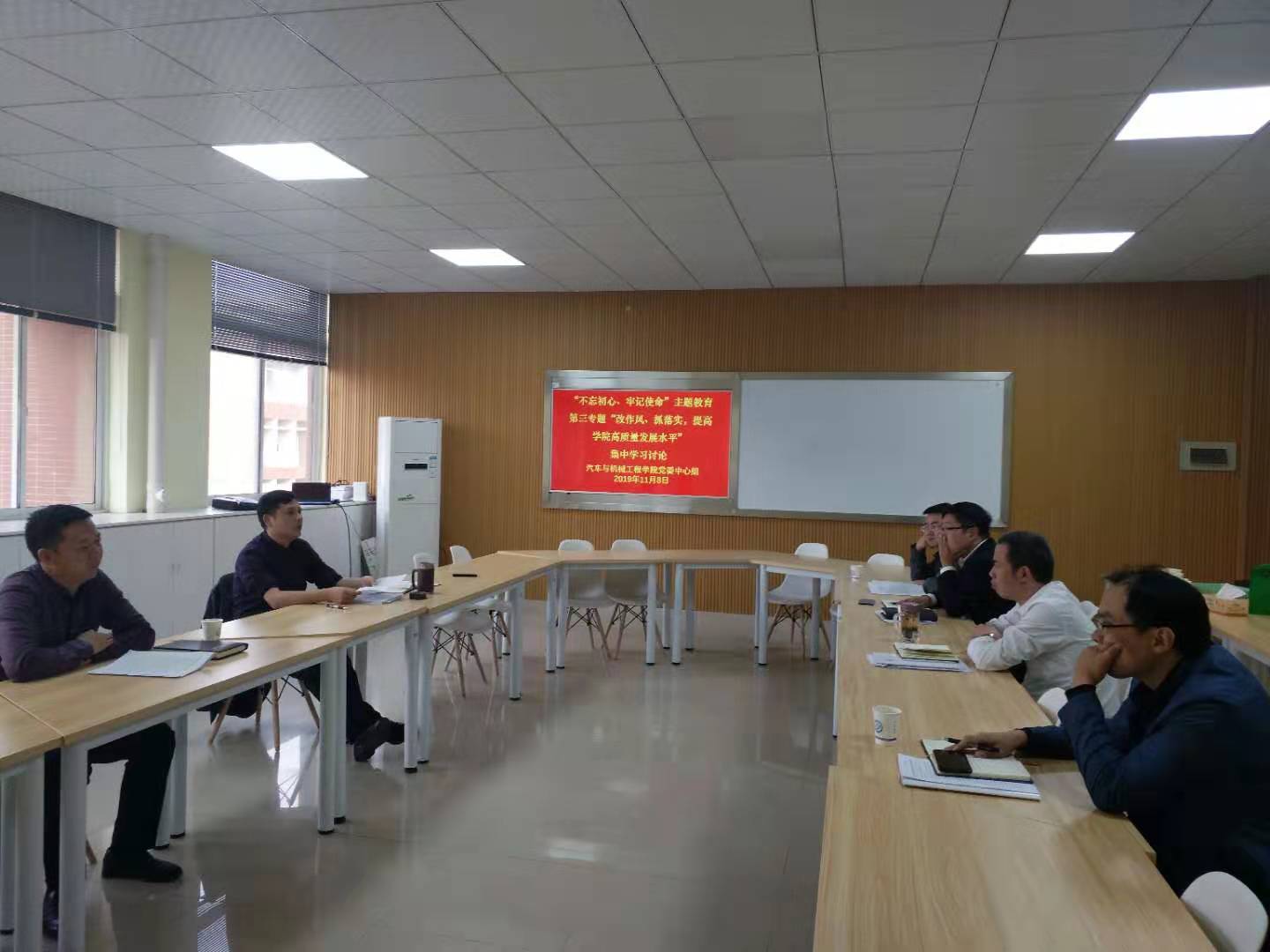 11月8日下午,汽机学院集中学习讨论了“不忘初心、牢记使命”主题教育第三专题“改作风、抓落实 提高学院高质量发展水平”。学院全体党政领导班子成员参加了本次学习讨论。由学院党委书记邱国良主持会议。