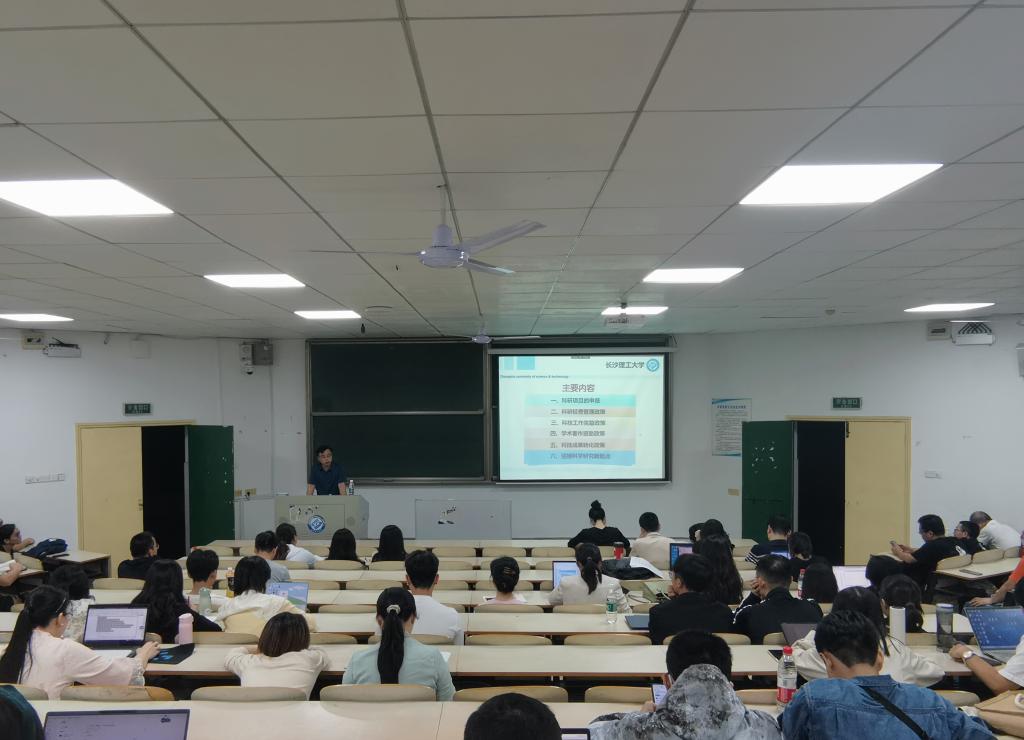 9月21日晚,在金盆岭校区6教409教室,开云官网科技处副处长胡宏伟教授应邀以“立足新起点 了解新政策 推动新发展”为题,为2023年教师岗前培训班作科研管理与科研能力提升专题讲座。人事处相关工作人员及全体培训学员参加了讲座。