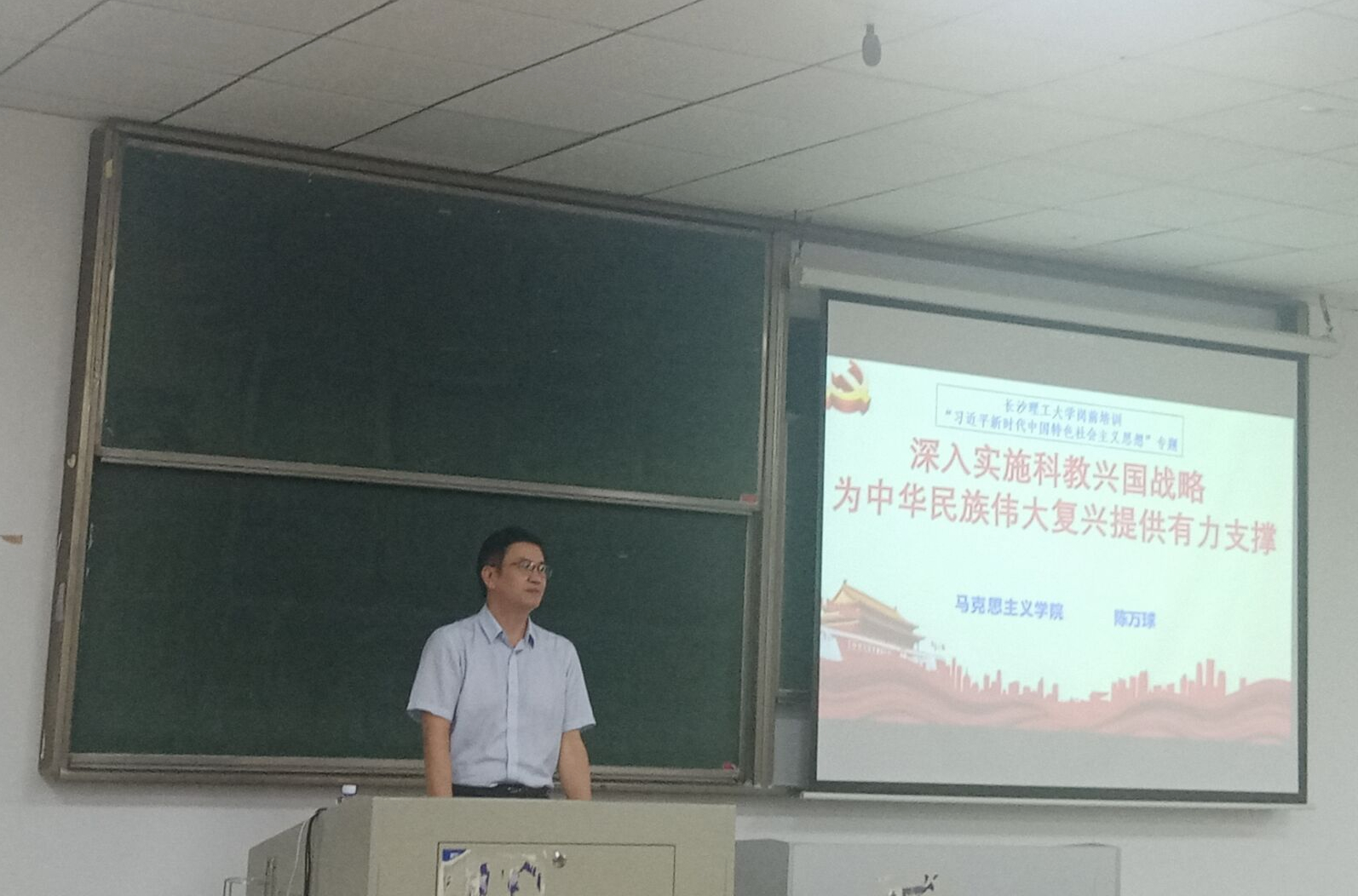 10月10日下午,在金盆岭校区6教409教室,开云官网马克思主义学院党委书记陈万球教授应邀以“深入实施科教兴国战略 为中华民族伟大复兴提供有力支撑”为题,为2023年教师岗前培训班学员作思政理论专题讲座。