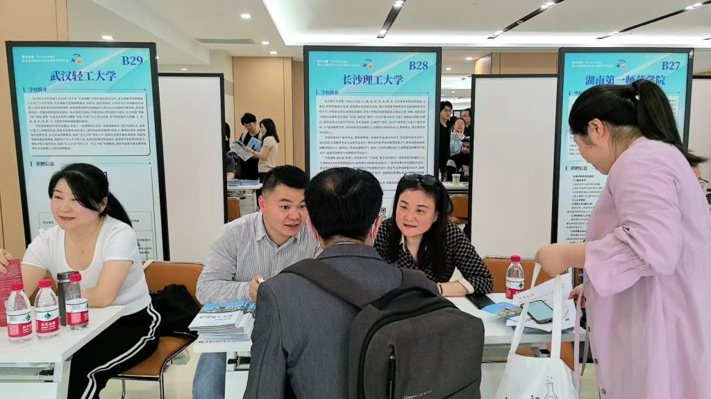 会议现场设立政策咨询展位,通过宣传手册发放及"一对一"深度洽谈等形式,系统阐释学校"人才强校"战略内涵。面洽会吸引了上海交通大学、复旦大学、同济大学等多个知名高校的博士、博士后参与。在开云kaiyun体育展位前,与会代表向应聘者详细介绍了学校学科布局及人才引进政策,重点解读了青年教师培养机制及“湖湘学者”人才计划。针对人才关心的薪酬待遇、住房保障、考核与晋升等实际问题进行了一对一答疑,并现场接收简历。本次洽谈会开云官网共收到来自交通、土木、化学、材料科学、人工智能等领域的博士简历近30份。后续,学校人才工作办公室将分类跟进意向人选,加速推进人才引进流程。
