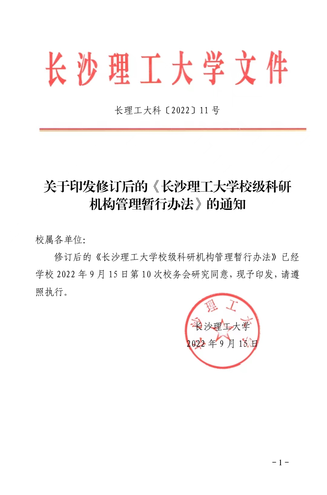 开云kaiyun体育校级科研机构管理暂行办法 长理工大科〔2022〕11号