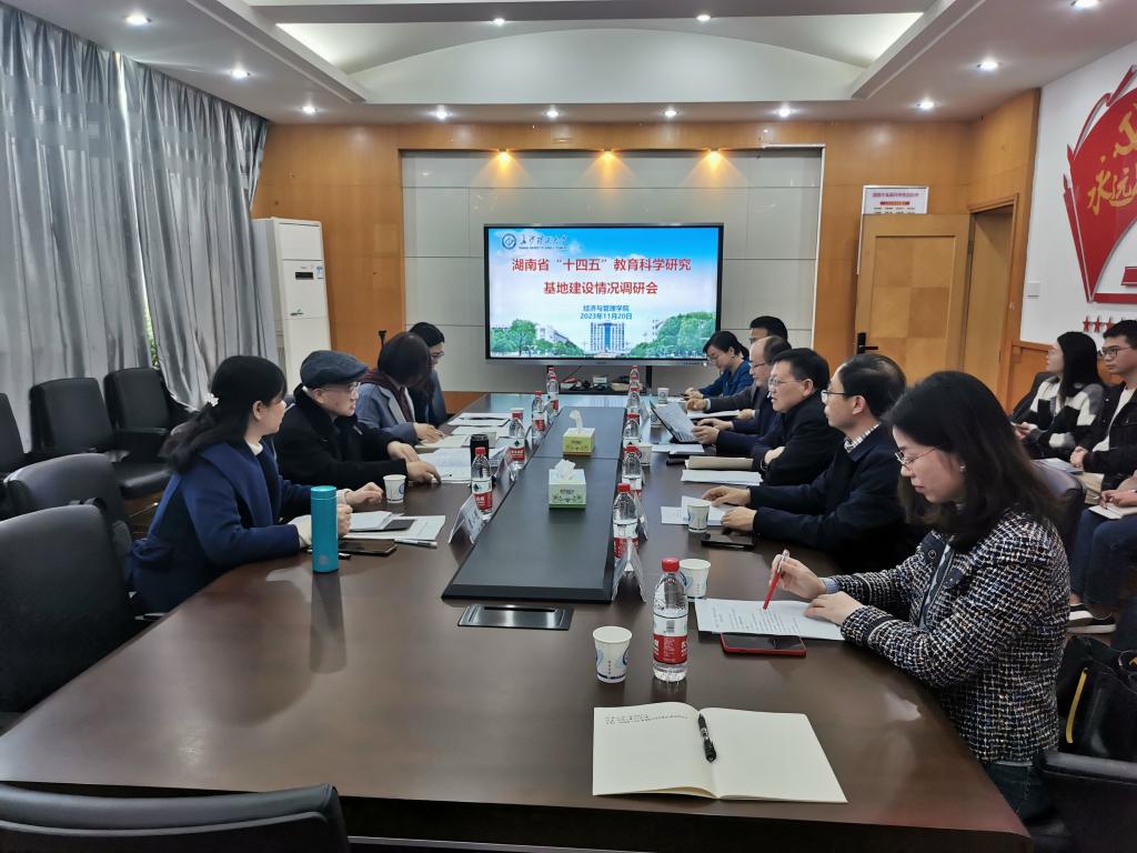 11月20日,湖南省“十四五”教育科学研究基地建设情况调研会在开云官网举行。调研组长原湖南第一师范党委书记彭小奇、省教育科学规划办副主任谢剑虹、校党委副书记、基地负责人刘建民、社科处处长刘建江、经管学院院长彭新宇、基地首席专家黄维及基地成员出席。会议由社科处处长刘建江主持。