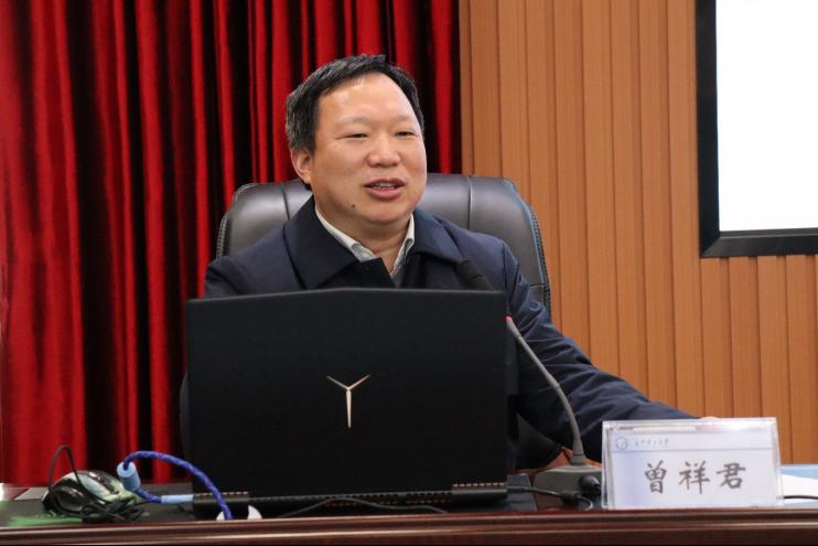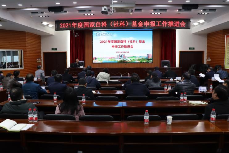 1月25日下午,学校在一办九楼会议室召开2021年度国家基金申报工作推进会。校长曹一家、副校长曾祥君,科研部部长王磊、社科处处长刘建江、各二级学院党政负责人、科研副院长等60余人参会。会议由曾祥君主持。