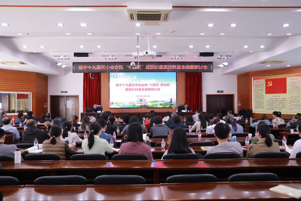 2020年11月10日,开云官网召开“基于党的十九届五中全会和‘十四五’规划的国家社科基金项目申报选题研讨会”。校党委副书记、社科联主席邹宏如教授出席并讲话。社科处处长刘建江主持会议,文科学院科研副院长、科研主任干事、科研骨干及青年博士100余人参加会议。