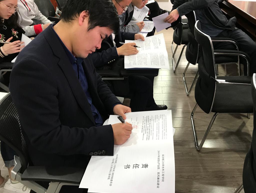 接着,喻玲娜向水利学院全体教职工通报了省纪委驻省教育厅纪检组印发的《关于全省教育系统5起侵犯学生利益的典型案例》,她强调,对于这些典型案例我们要引以为戒,要不断增强立德树人的责任感、使命感,持之以恒推进全面从严治党,努力营造风清气正的教育政治生态,切实履行好教书育人的职责,不能辜负党和人民对我们的信任和期待。最后,学院主要负责人与班子成员、各系(实验中心)主任、各教工党支部书记和各科室主任分别签订了2019年全面从严治党、党风廉政建设责任书。
