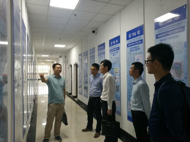 孙士权就“湖南省环境保护河湖疏浚污染控制工程技术中心”的建设内容及开展工作情况进行汇报。聂小保副教授针对茅洲河的疏浚余水处理中氨氮超标的问题开发的“泥沙诱导结晶脱氮除磷”技术进行汇报。邓斌对“洞庭湖水环境治理与生态修复湖南省重点实验室”的建设方案、杜家毫书记布置的两个课题、研究进展、洞庭湖多媒体沙盘与智能控制中心的筹划建设进行讲解。程继充分肯定了“工程中心”的“根际生态圈”治理富营养化水体关键技术、蓝藻和小球藻控制技术及控制蓝藻和小球藻的生物炭活性材料及“泥沙诱导结晶脱氮除磷”等研究工作,并指出双方单位应发挥各自优势,找到合作切入点,形成良性的长久合作机制。双方就平台共建、科研成果转化、产学研合作等进行探讨,并初步达成合作意向。